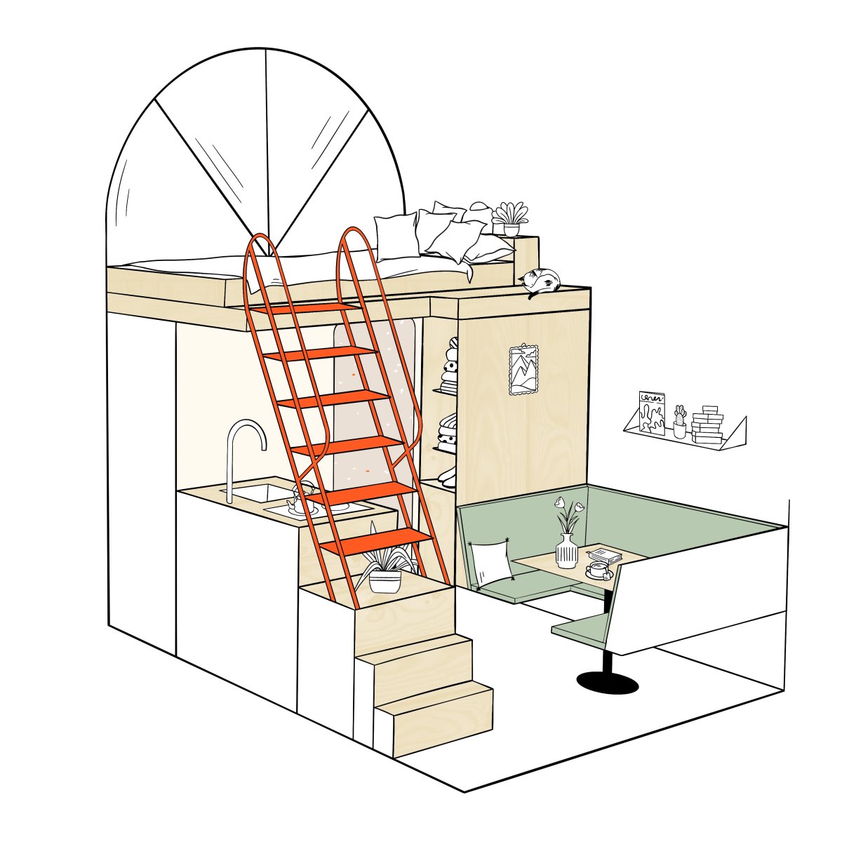 La cuisine, elle, reste ultra fonctionnelle, mais ce qui fait toute la différence, c’est sa large ouverture sur l’extérieur, inondant l’espace de lumière et créant une vraie sensation de grandeur.