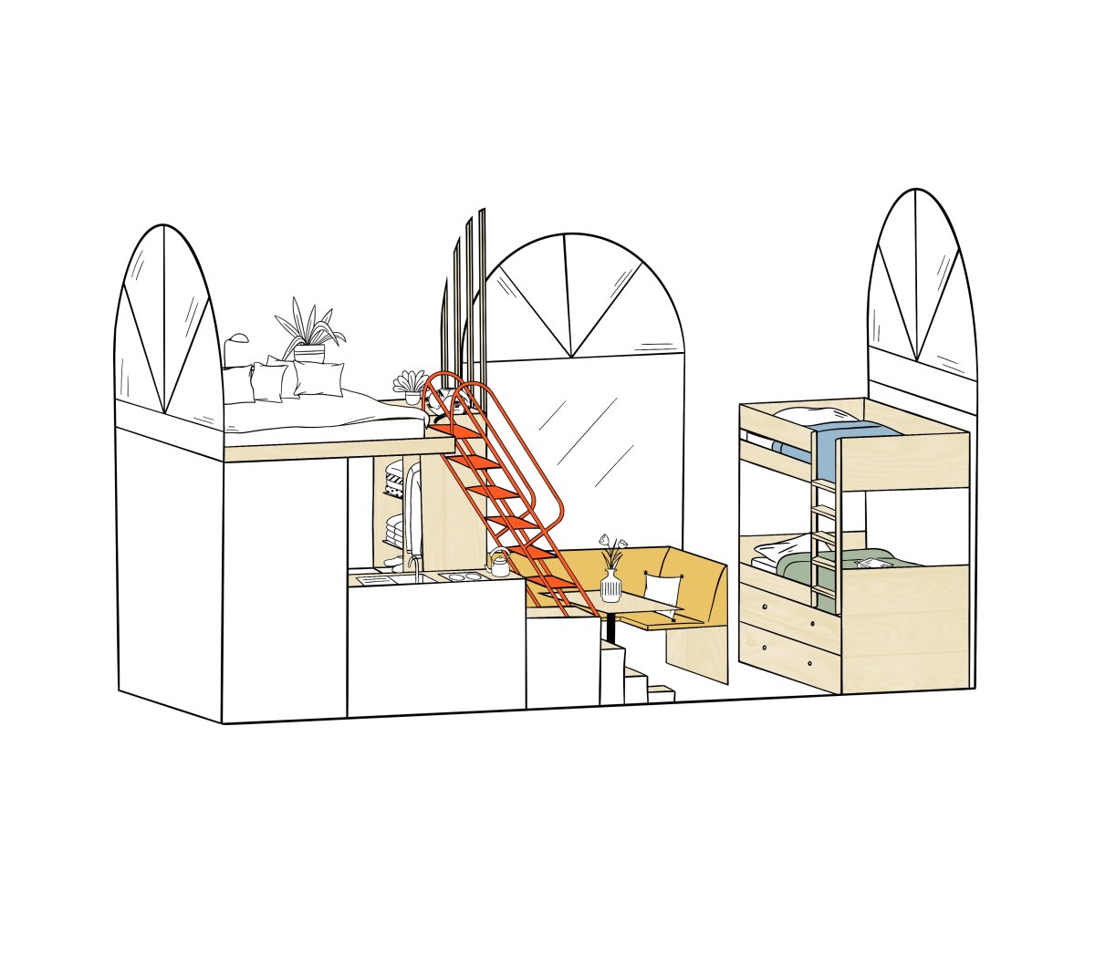 Convivial et astucieux, il est pensé pour accueillir valises et caisses de voyage. Et pour plus de tranquillité, l’espace enfant est modulable et cloisonnable sur demande.