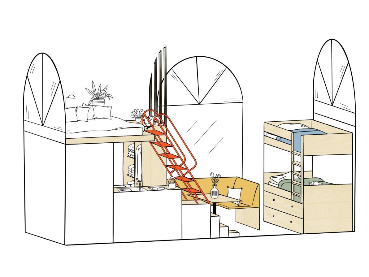 Il offre une grande sensation d’espace grâce à ses trois ouvertures en demi-lune. Convivial et astucieux, il est pensé pour accueillir valises, caisses de voyage et autres essentiels du quotidien.